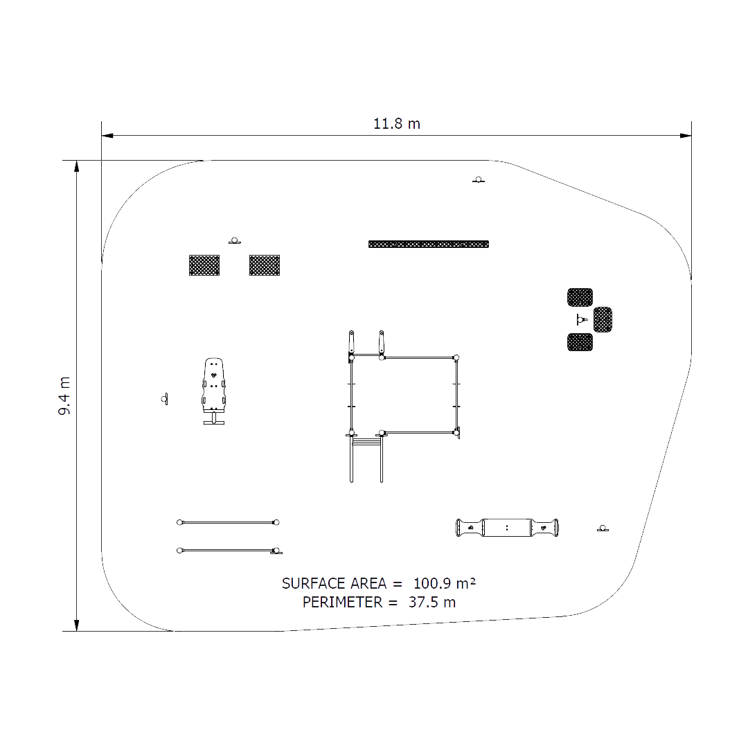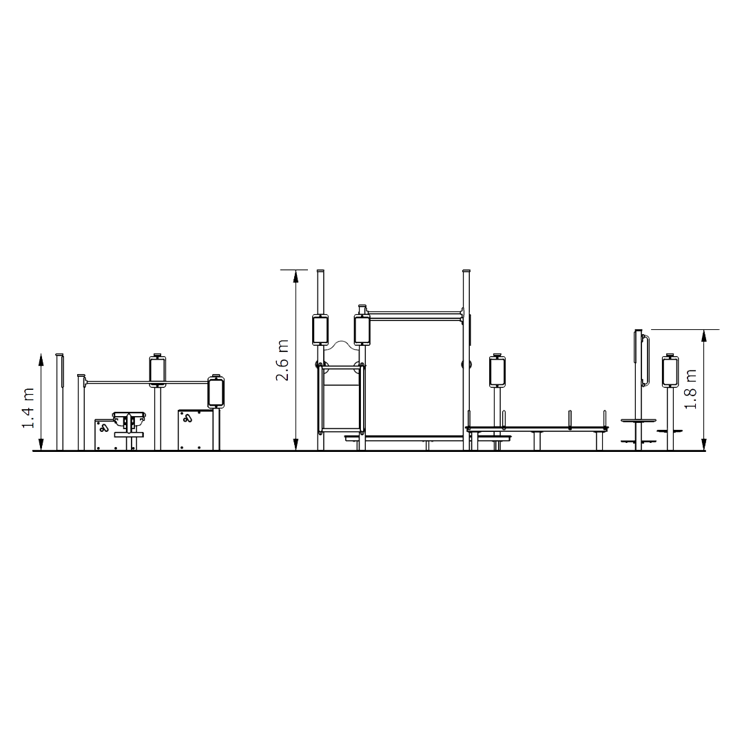 Our 12 Station Challenge is an intermediate to advanced outdoor fitness circuit with a mix of stations like pull ups, leg raises, body dips, balance beam, roman rings, box jumps and multi bench to deliver a comprehensive strength and functional workout for users aged 12 and up in community spaces.