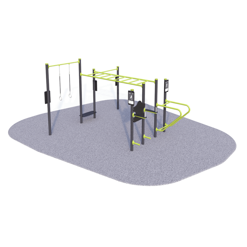 Our 5 Station Challenge is an outdoor fitness circuit featuring five dynamic stations designed to improve strength, endurance, core stability, and agility, perfect for schools, parks, and community fitness spaces.