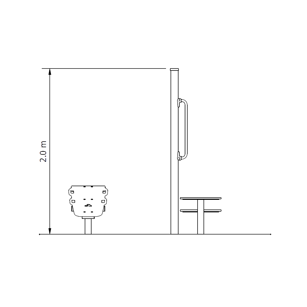 Step Ups – Providing two steps of different heights. The lower step with grab rail is great for seniors to build leg strength and enhanced mobility. The upper step offers a greater challenge for people with greater fitness levels.
