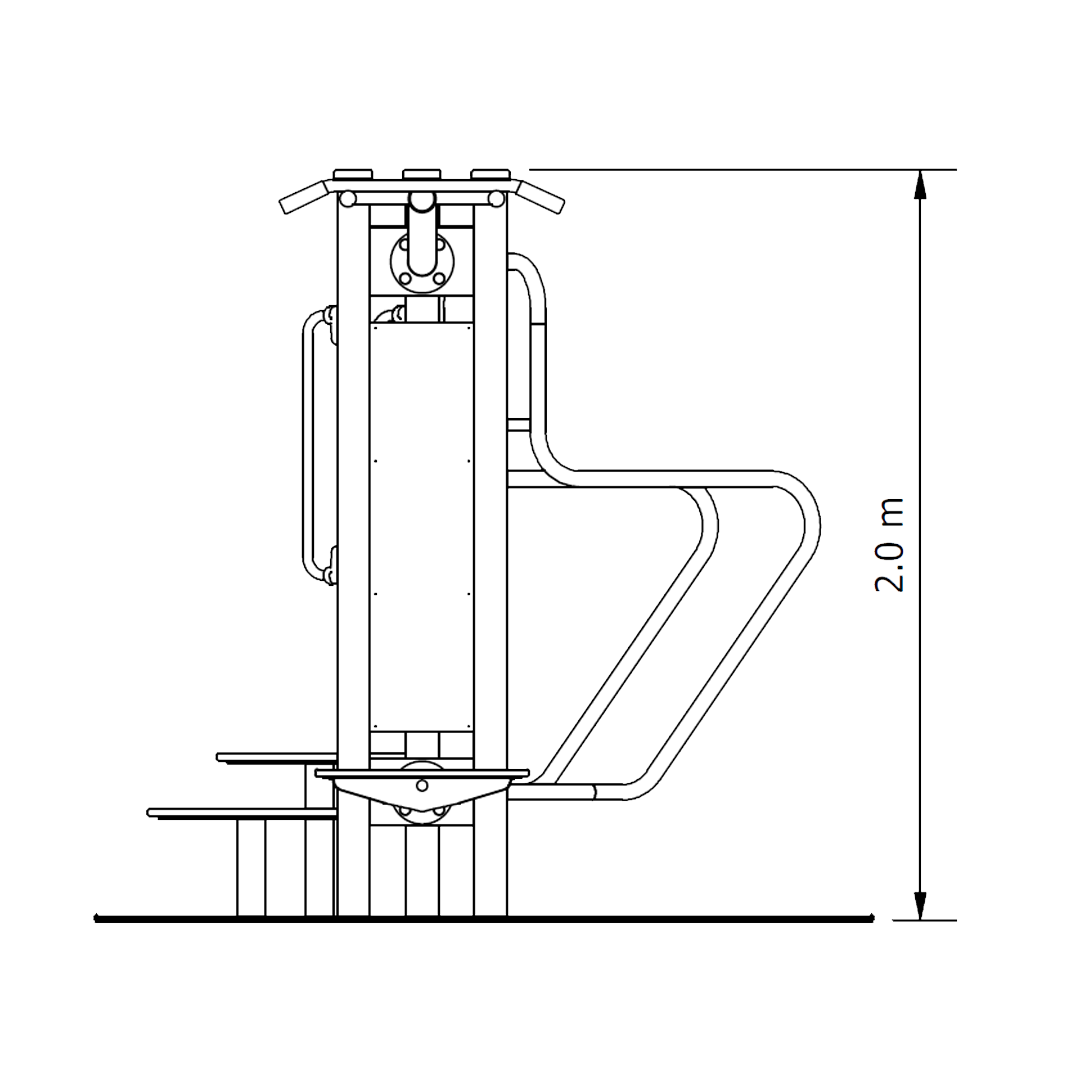 Step Ups – Providing two steps of different heights. The lower step with grab rail is great for seniors to build leg strength and enhanced mobility. The upper step offers a greater challenge for people with greater fitness levels.