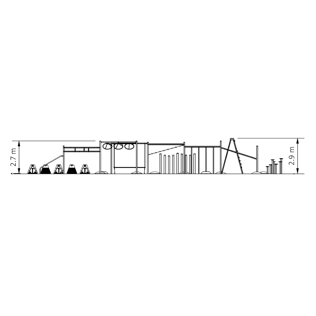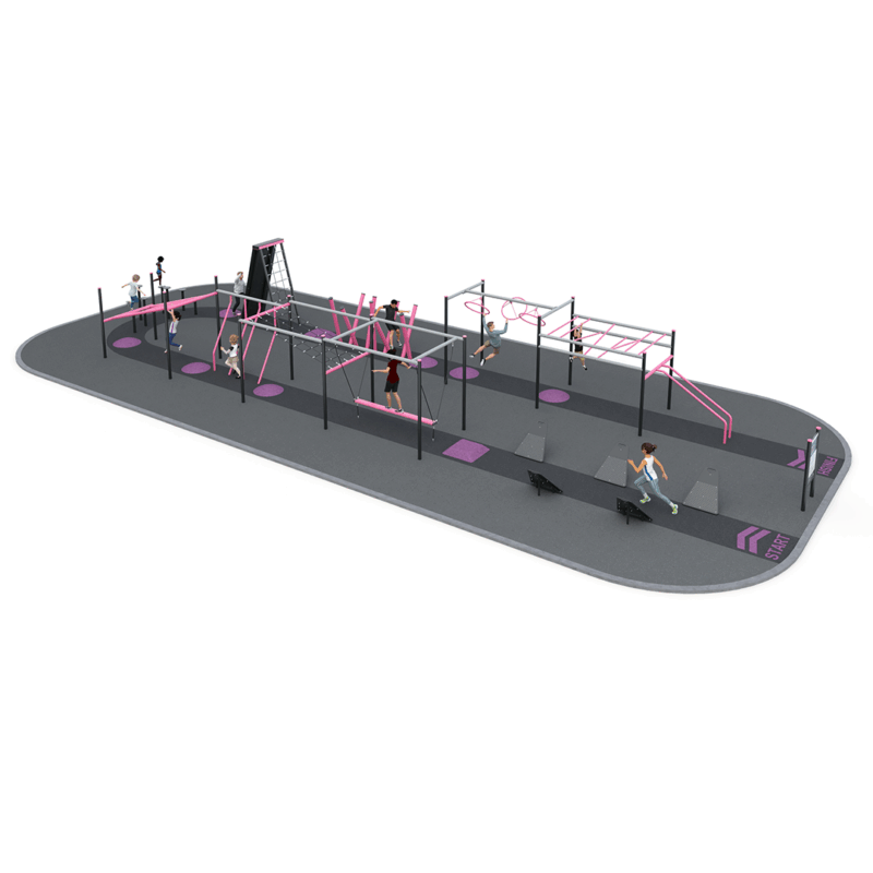 Our Challenger Course is a high intensity ninja style obstacle circuit featuring progressive climbing, swinging, and balance challenges, designed to test strength, grip endurance, agility, and coordination in parks, schools, and community fitness environments.