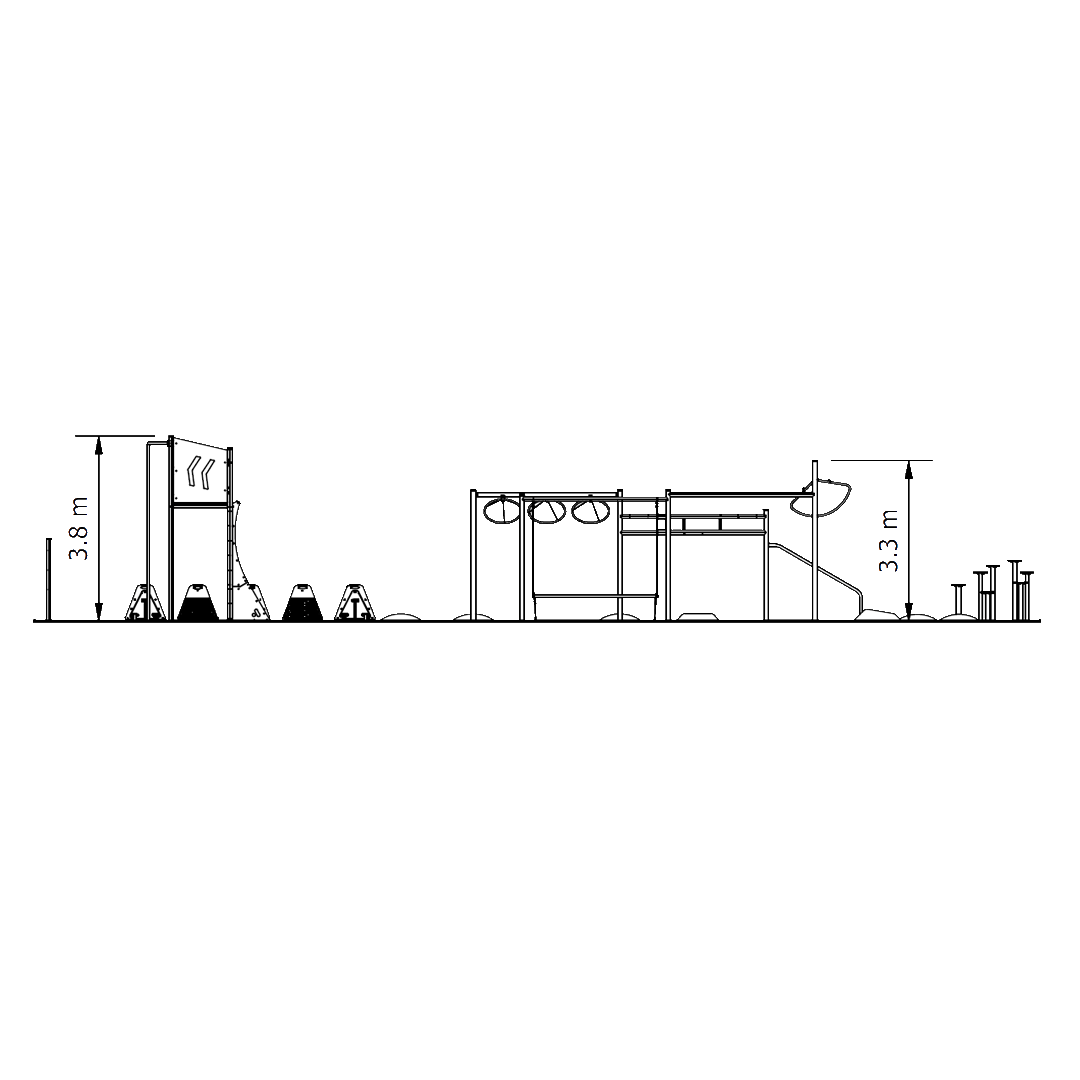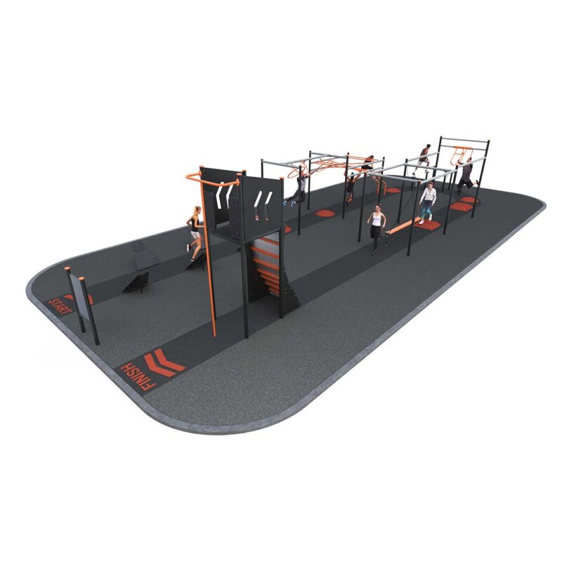 Our Elevate Course is a ninja-style obstacle circuit featuring 8 dynamic challenges, including Jungle Bars, Rock Hop, and Warped Wall. Designed to build strength, agility, and endurance, this durable outdoor fitness course is perfect for schools, parks, and community spaces.