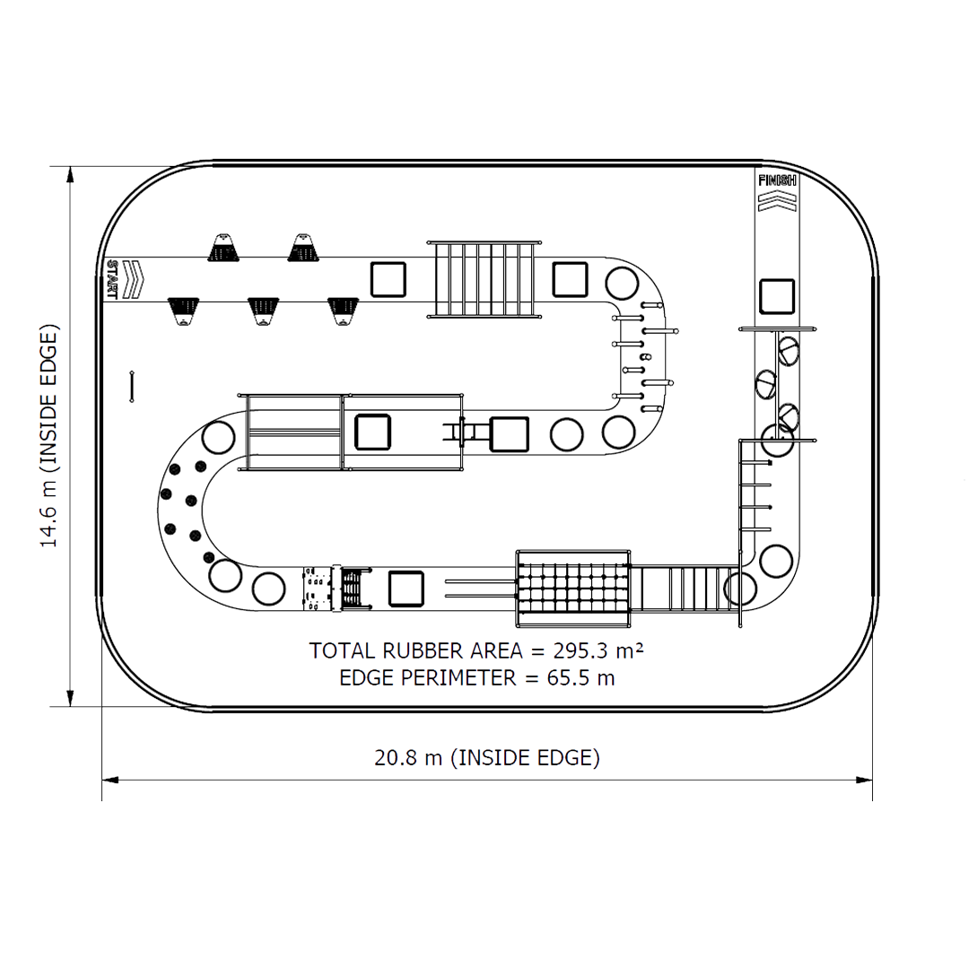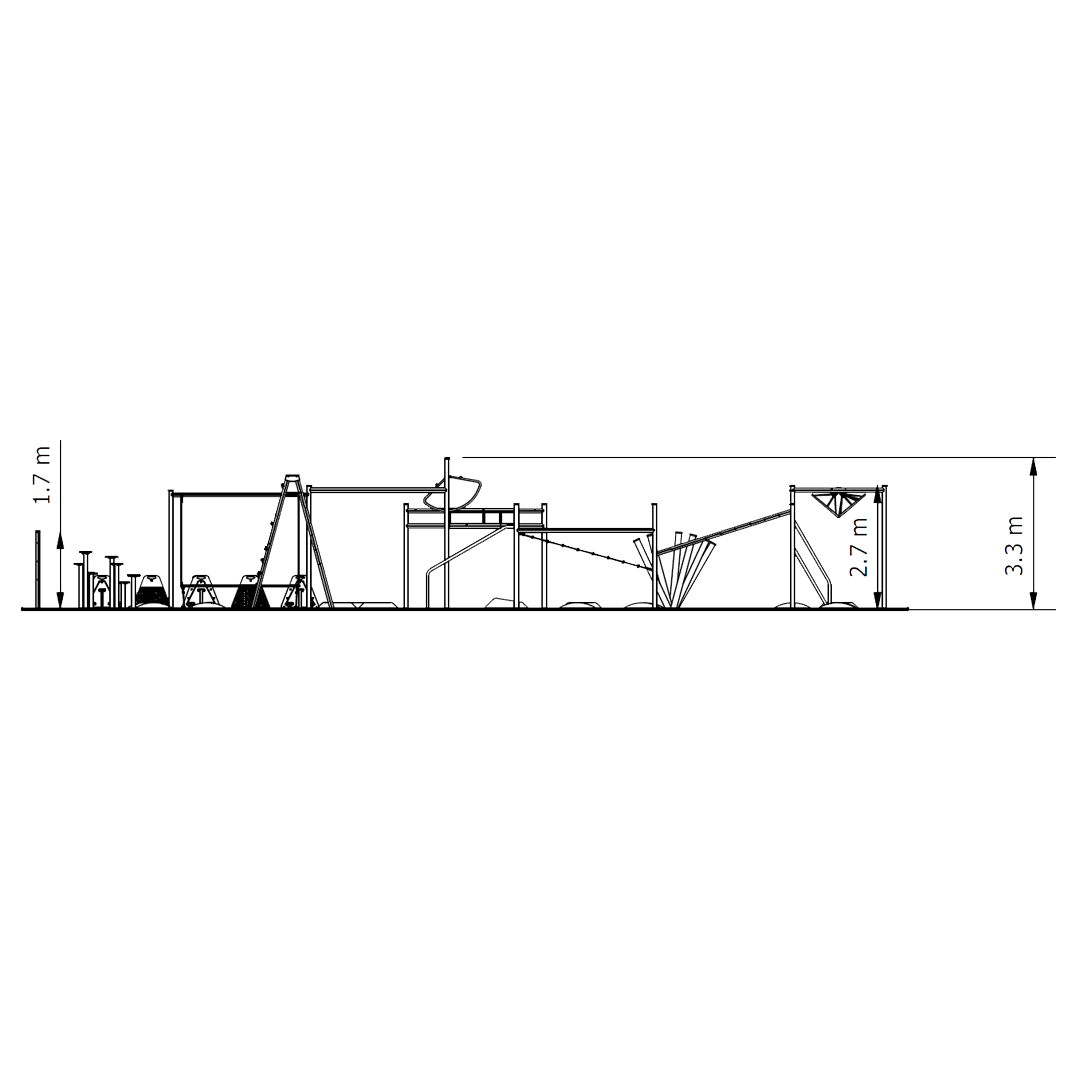 Multi Course is a versatile ninja style obstacle circuit combining multiple climbing, swinging, and traverse obstacles, designed to support progressive training, improve upper body strength, grip endurance, agility, and coordination across schools, parks, and community fitness spaces.
