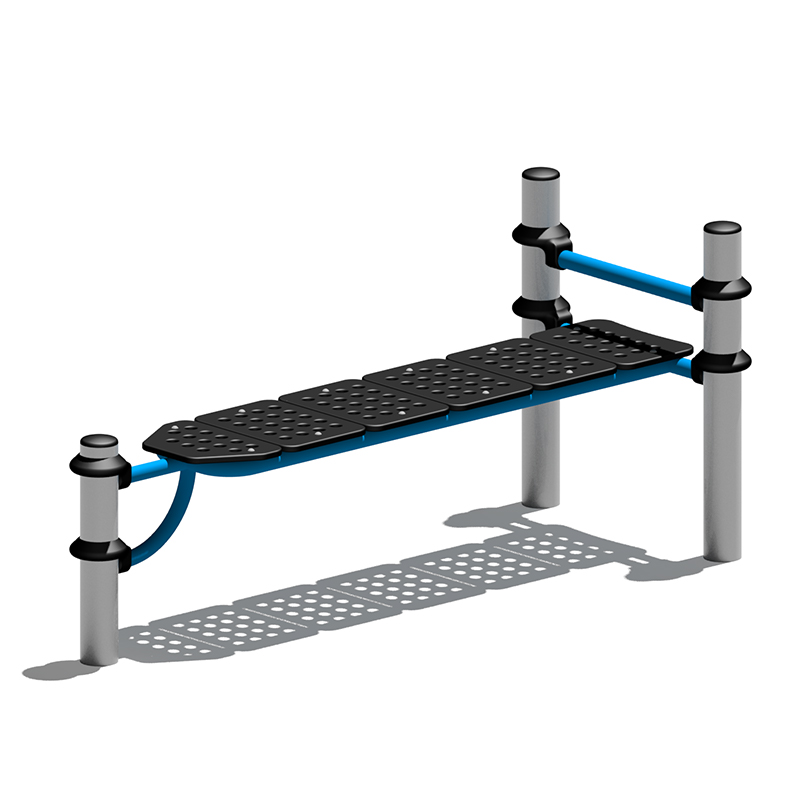 INSTRUCTIONS: Lying down on the board with knees bent, secure your feet under the bar. Raise your upper body into a sitting position and lower to the original position again.