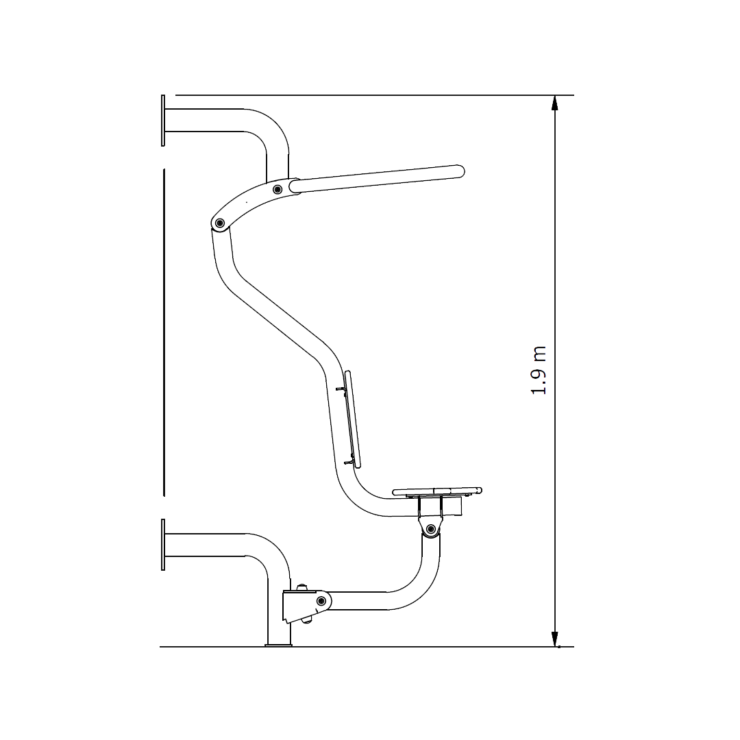 Promotes good posture, arm, shoulder and upper back strength. The level of effort can be increased by lifting one or both feet off the ground while performing the exercise.